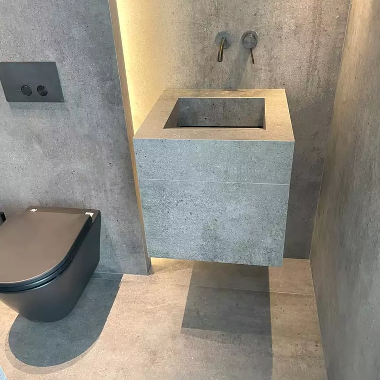 Toilette en effet béton Atrium Grey avec son lave main coordonné